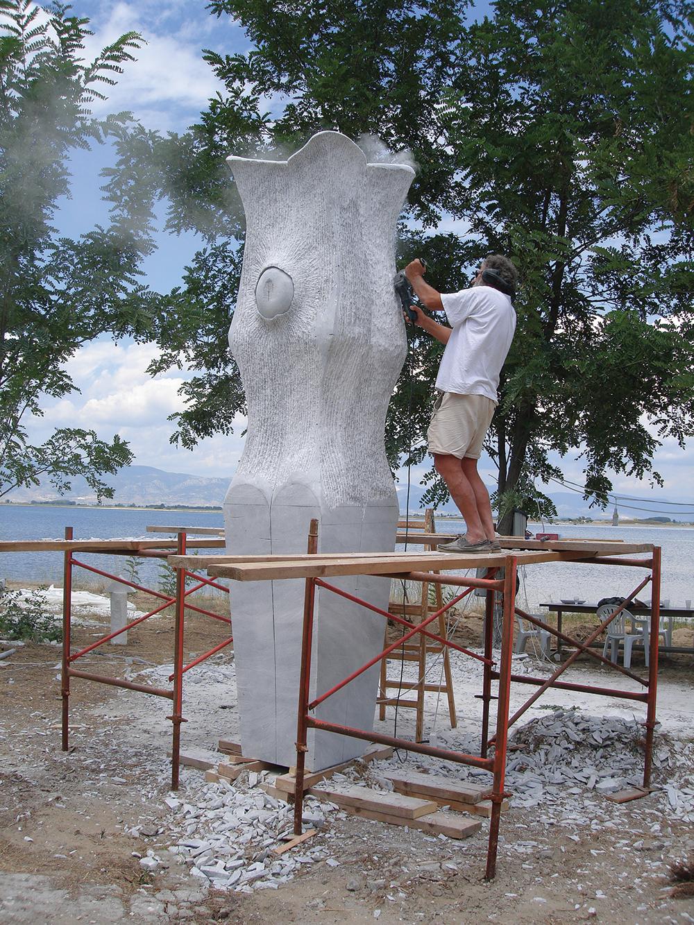 – Στην Δράμα δυστυχώς έχουμε ένα σοβαρό κεφάλαιο που δεν αξιοποιείται. Με τόσο μάρμαρο, βουνά από μπάζα θάβονται στις χωματερές των βιομηχανιών επεξεργασίας μαρμάρου και των λατομείων, θα μπορούσαμε να είμαστε μια καλλιτεχνική πόλη ξακουστή στα πέρατα της οικουμένης, χωρίς υπερβολές. Καλλιτέχνες και φιλότεχνοι θα την είχαν ως προορισμό. Η παρουσία του μαρμάρου θα ήταν καθολική ως υλικό κατασκευής διακόσμησης και καλλιτεχνικής έκφρασης στον δημόσιο χώρο. Παλαιότερα ο κ. Κώστας Ευμοιρίδης, Νομάρχης τότε, έκανε μια αξιόλογη προσπάθεια: οργάνωσε τέσσερα διεθνή συμπόσια γλυπτικής με ανοιχτό κάλεσμα καλλιτεχνών απ’ όλο τον κόσμο για την δημιουργία καλλιτεχνικού έργου. Παράλληλα με τα συμπόσια υπήρχε η σκέψη δημιουργίας σχολής επεξεργασίας μαρμάρου. Από αυτά τα συμπόσια που πραγματοποιήθηκαν στο πάρκινγκ του Διοικητηρίου, πέρασαν και δημιούργησαν έργα μνημειακών διαστάσεων πολλοί καλλιτέχνες, και μας άφησαν μια σπουδαία κληρονομιά. Από την εποχή αυτή κληρονόμησε η πόλη τα γλυπτά στην περιοχή του Διοικητηρίου και αλλού.