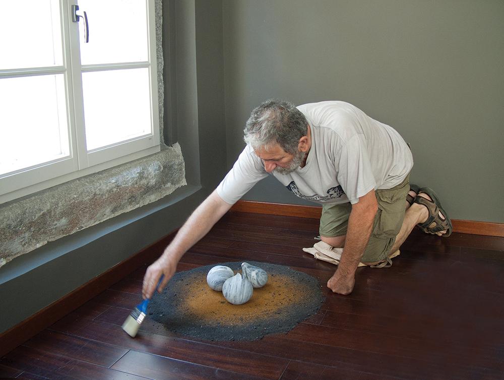 Μέσα από αυτήν την παραπάνω διεργασία, παράγονται ιδέες που θα αποτελέσουν τα «θεμέλια» της εκάστοτε σύνθεσης. Με επίμονη προσπάθεια αφαίρεσης ή πρόσθεσης, το υλικό παίρνει σχήμα και γίνεται φόρμα, αποκτά υφή και χρώμα.