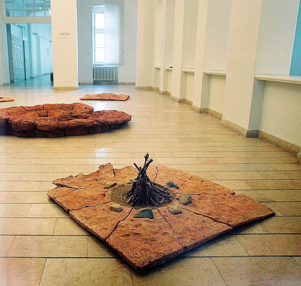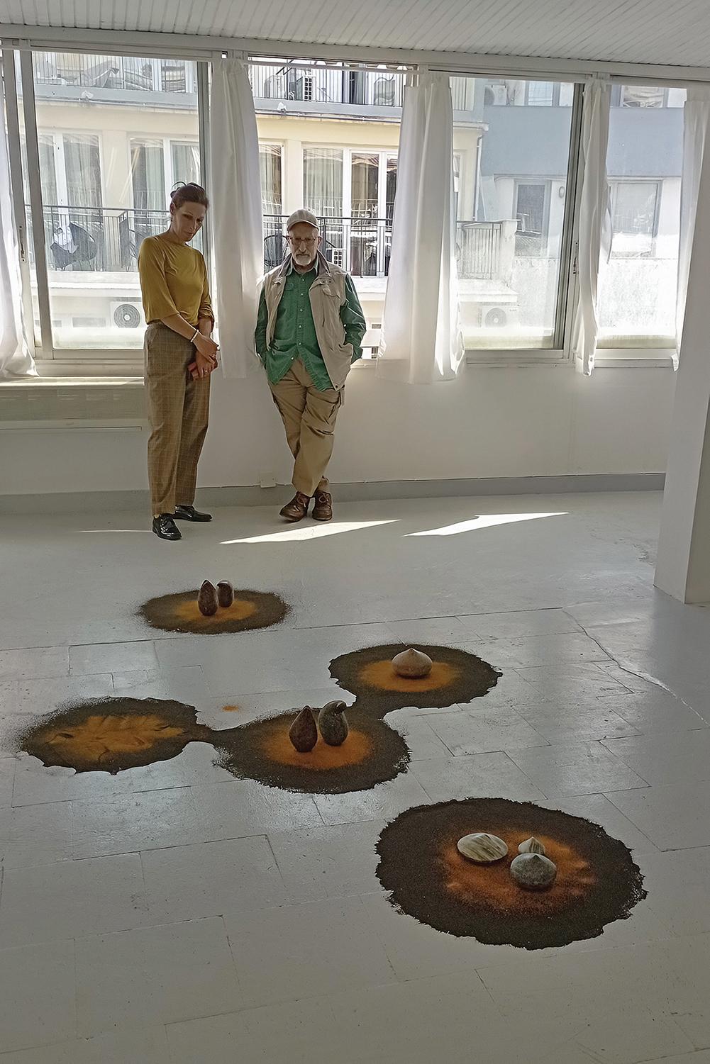 – Όλα τα υλικά με συγκινούν και όλες οι διαδικασίες πλασίματος μιας φόρμας για την δημιουργία ενός έργου, εμπεριέχουν την «μαγεία» της ανακάλυψης. Το ξύλο με την ζεστασιά του και την βιολογική του μνήμη. Το χώμα ως μήτρα, ως συστατικό της ζωής, είτε αυτούσιο στην αρχική του μορφή, που το χρησιμοποιώ ως χρώμα και στις εκθέσεις πάντα δημιουργώ επιδαπέδιες εγκαταστάσεις με αυτό, είτε ως πηλό πλασμένο με το νερό και την φωτιά, (κεραμική, ψημένος πηλός). Η πέτρα, (ο γρανίτης, το μάρμαρο κτλ), που εμπεριέχουν την γεωλογική μνήμη της φύσης. Τέλος το χαρτί, που πάνω του σχεδιάζονται και χρωματίζονται τα όνειρα.