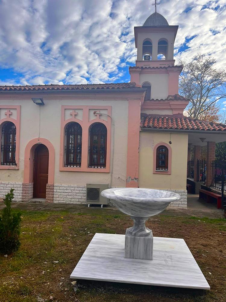 Σε συνεργασία με την εταιρεία «Μάρμαρα Ταουσιάνη» συνέβαλε στη δημιουργία  μαρμάρινης φιάλης, ένα πραγματικό «κόσμημα», η οποία τοποθετήθηκε στον προαύλιο χώρο του Ιερού Ναού της Αγίας Βαρβάρας, της πολιούχου της πόλη της Δράμας.